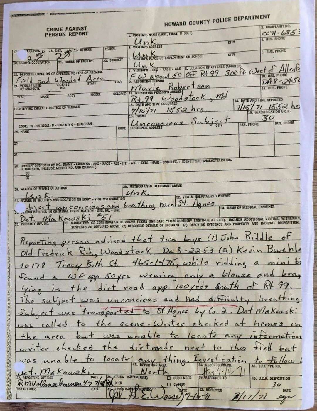 1971年7月的一个下午,两个男孩正骑着车在马里兰州的乡间小路上穿梭,突然间,他们发现田野里躺着一名半裸的女子。