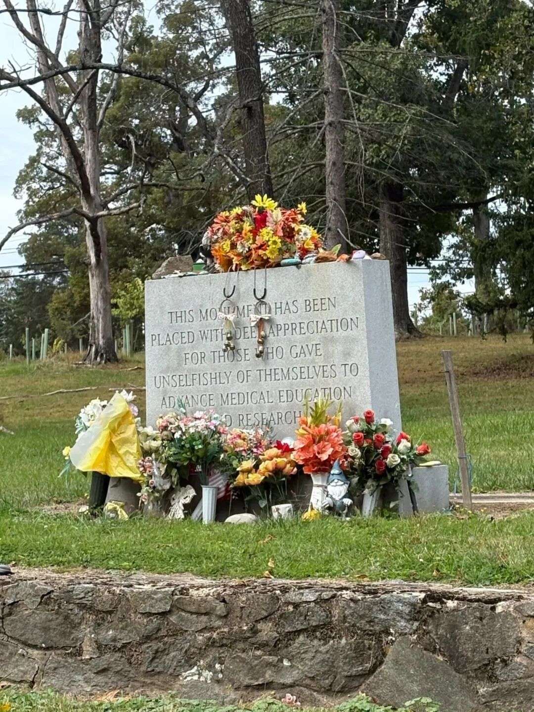 她的遗体被捐献为解剖标本,后来骨灰被撒入州立精神病院纪念园内一座纪念逝者的石碑旁边。