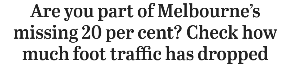 墨尔本最繁忙地区人流量少了近1万人!办公楼一周有两天近乎空城,餐厅取消周五用餐高峰,商家不得不靠更猛烈的促销争夺注意力。