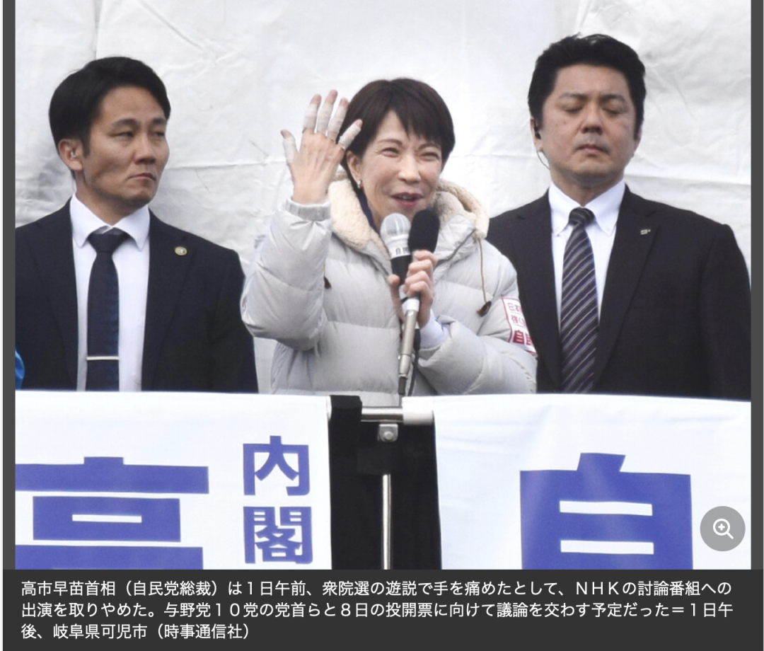 或许正是这种态度与表现,让高市早苗在此前临阵退缩缺席了重要的党首电视直播辩论会。
