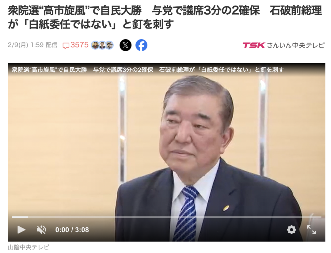 石破茂还补充,希望自民党内部最好反思,为什么在这次众议院选举中能获得如此高的票数。