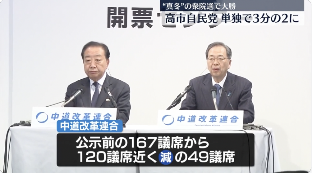 日本选举就是一场零和博弈,右派大胜,左派被打压。在选举之前组成的“中道改革联盟”迎来大惨败。这意味着日本政坛彻底右倾化已成铁一般的事实,中左派被边缘化。