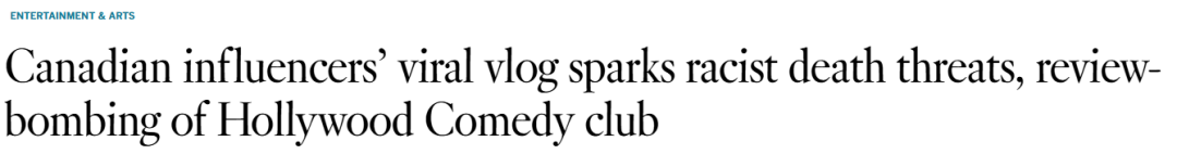 最近,加拿大几位热门网红的一条视频,让好莱坞喜剧俱乐部和创办人、华裔单口喜剧演员梁娇颖陷入网络风暴。俱乐部不仅遭到大量恶意差评,梁娇颖本人也收到死亡威胁和辱骂信息。