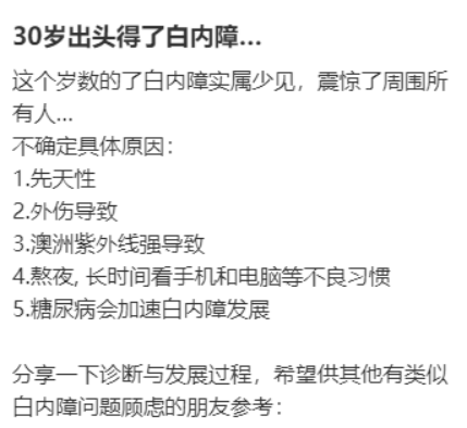 千万别以为这是危言耸听,真的有华人疑似中招:30岁出头就患上了以前大多数只在老年人群中听说的眼部疾病白内障。