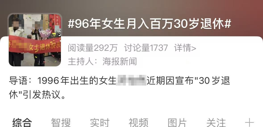 因为这些爽文女主都不敢写的剧情,竟然发生在她的身上,于是“96年女孩月入百万”“30岁退休”的词条一条条爆上热搜,羡慕嫉妒恨的网友们都快绕地球两圈了。