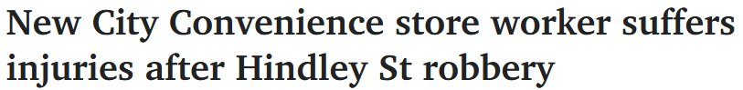 阿德Hindley St便利店发生抢劫案,致店员受伤!