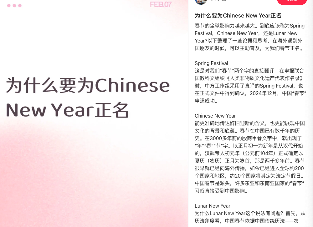 临近过年,这两天,小红书上关于“Chinese New Year”和“Lunar New Year”叫法的讨论,在澳洲华人圈里迅速发酵,热度直接冲上来。