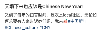她在帖子中说明了为什么要用Chinese New Year来表达中国新年。