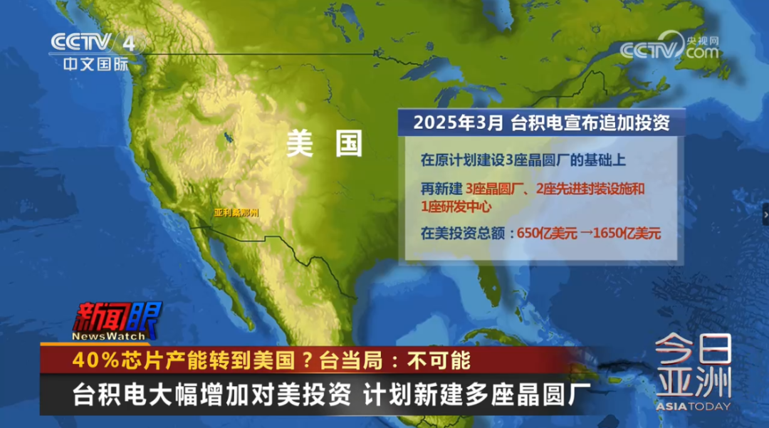 值得一提的是,台积电赴美设厂持续引发关注,特朗普政府明确表示,希望将台湾半导体产能的40%转移到美国国内。对此,台当局回应称不可能。
