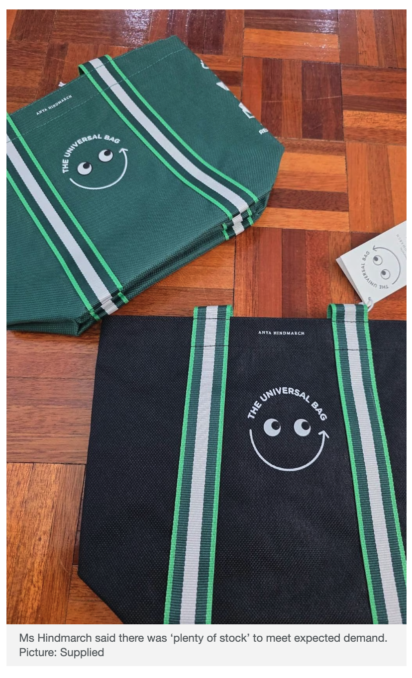 英国品牌出售的托特包价格最高可达 1695 英镑(约合 3277 澳元),而价格更实惠的款式零售价约为 1054 澳元,因此 15 美元的超市版对某些人来说简直是“捡漏”。去年,由于库存迅速售罄,许多购物者感到失望,但欣德玛奇女士表示,这一次“库存充足”。“产品上市后的需求非常惊人。这款产品旨在以亲民的价格满足市场需求,希望每个想买的人都能买到,”她说道。“库存应该充足,足以满足需求。”