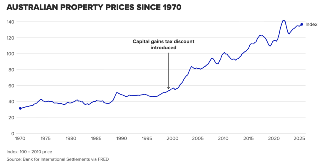 所谓的资本利得税折扣,是指个人持有投资资产超过一年后,出售获利时可以对利润减半进行征税,换句话说,只对 50 % 的收益缴税。这个制度始于 1999 年,原意是鼓励长期投资,但目前被批评成为一项巨大的税收漏洞。最新分析显示,未来 10 年这项折扣将使联邦预算损失 约 2470 亿澳元的税收,是自推出以来总成本的翻倍。