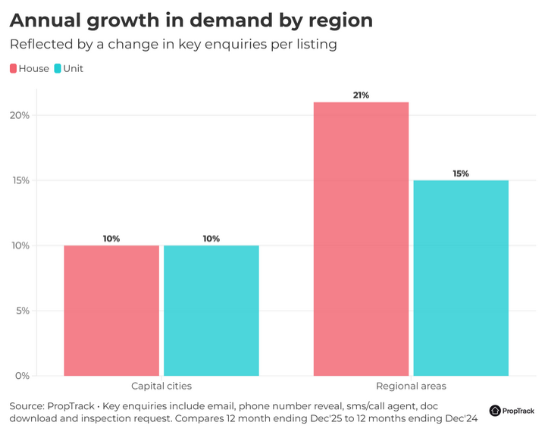 那么,为何区域市场表现持续优于首府城市?核心原因在于需求结构的显著变化——对各区域住房的需求增速已明显超过对首府城市的需求。需求是驱动房价上涨的关键动力,某些地区需求的强劲增长往往伴随着价格快速上升与买家竞争加剧。