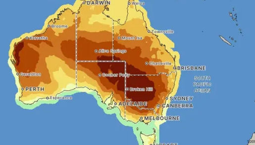 热浪警报覆盖范围几乎遍及全国,包括新州、维州、昆州、西澳、南澳、首都领地和北领地。