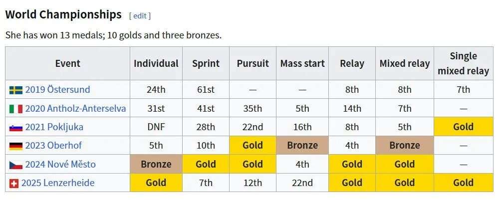 2月8日上周日,女子4x6公里冬季两项混合接力赛中,她担任最后一棒,和队友一起拿下金牌。