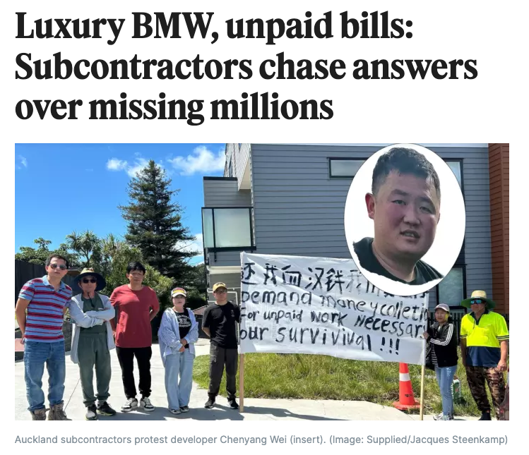 收藏欠款1300万!奥克兰华人开发商破产!工人上街拉横幅!“他开着16万宝马,就是不还钱”……