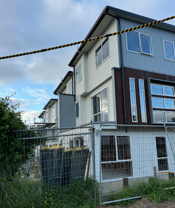 他们身后4栋联排别墅目前正处于抵押权人强制出售(Mortgagee Sale)状态,其中两栋已售出。