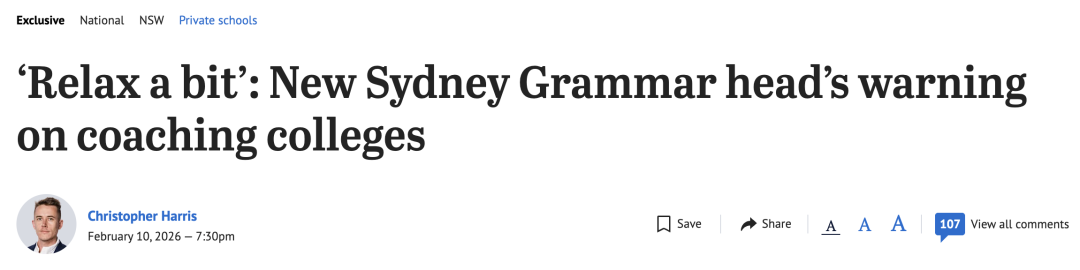 最后,在这个人人都在焦虑“落后”的年代,一位见过伊顿也懂澳洲的校长,在2026年给悉尼最顶尖的私校定下了新的调子: