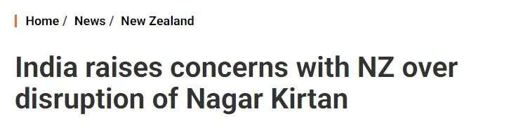 他提到,印度方面注意到,2026年初在新西兰陶朗加举行的一场锡克教Nagar Kirtan活动期间,遭名为“The True Patriots of New Zealand”的本地团体干扰。
