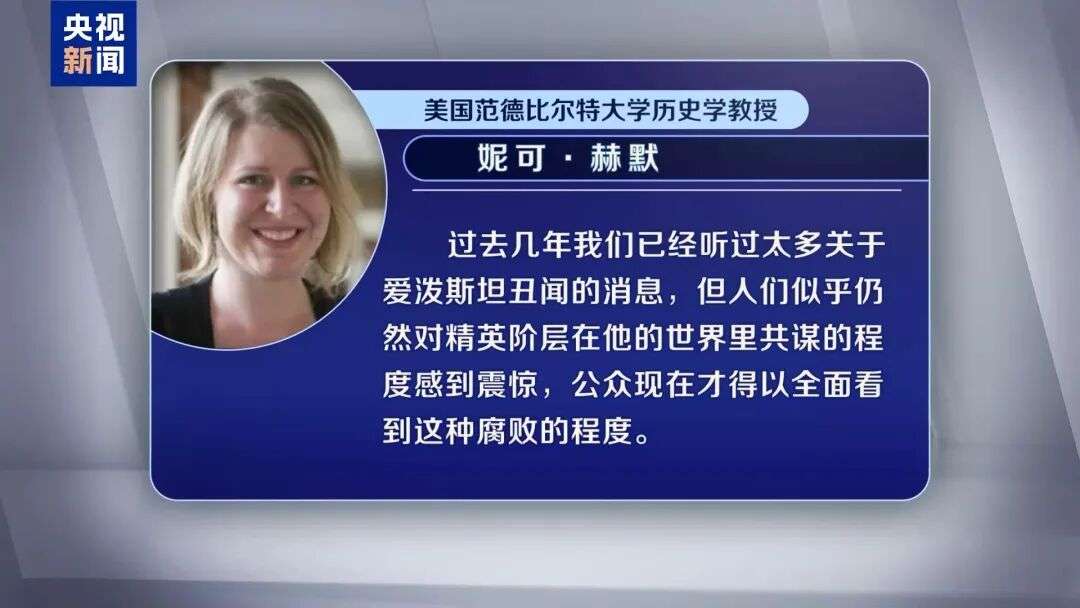 美国范德比尔特大学历史学教授妮可·赫默说:“过去几年我们已经听过太多关于爱泼斯坦丑闻的消息,但人们似乎仍然对精英阶层在他的世界里共谋的程度感到震惊,公众现在才得以全面看到这种腐败的程度。”