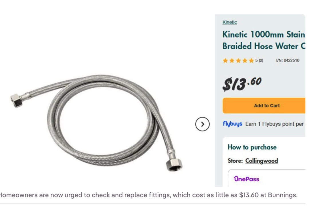 一个看似很不起眼、只要约 $13.60 的 Bunnings 软水管(flexible hose),竟然成为了 一户墨尔本家庭最沉重的灾难源头。