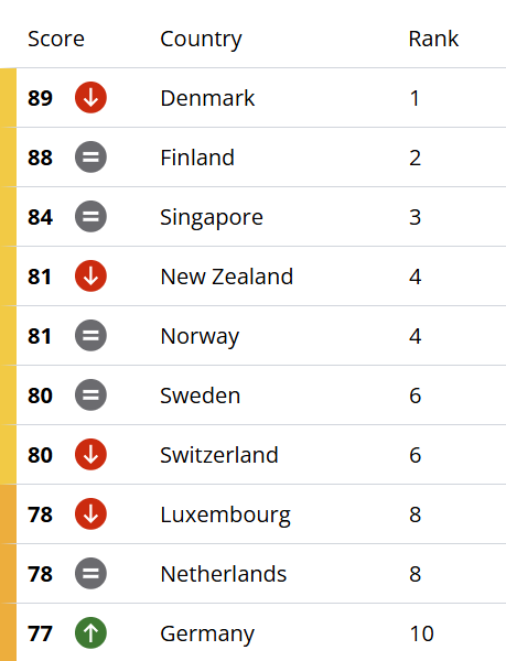 据悉,在2025年的排名中,排在前三位的分别是丹麦、芬兰和新加坡。