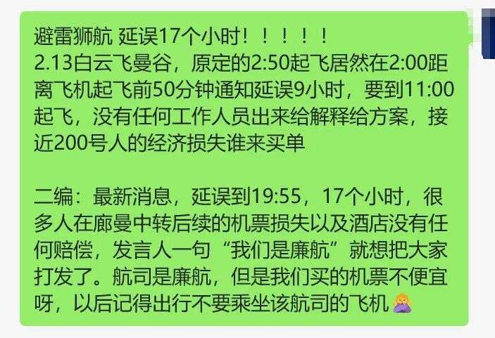 2月13日至14日,泰国廊曼机场一则关于航司延误的爆料在中国网友之间迅速传播。