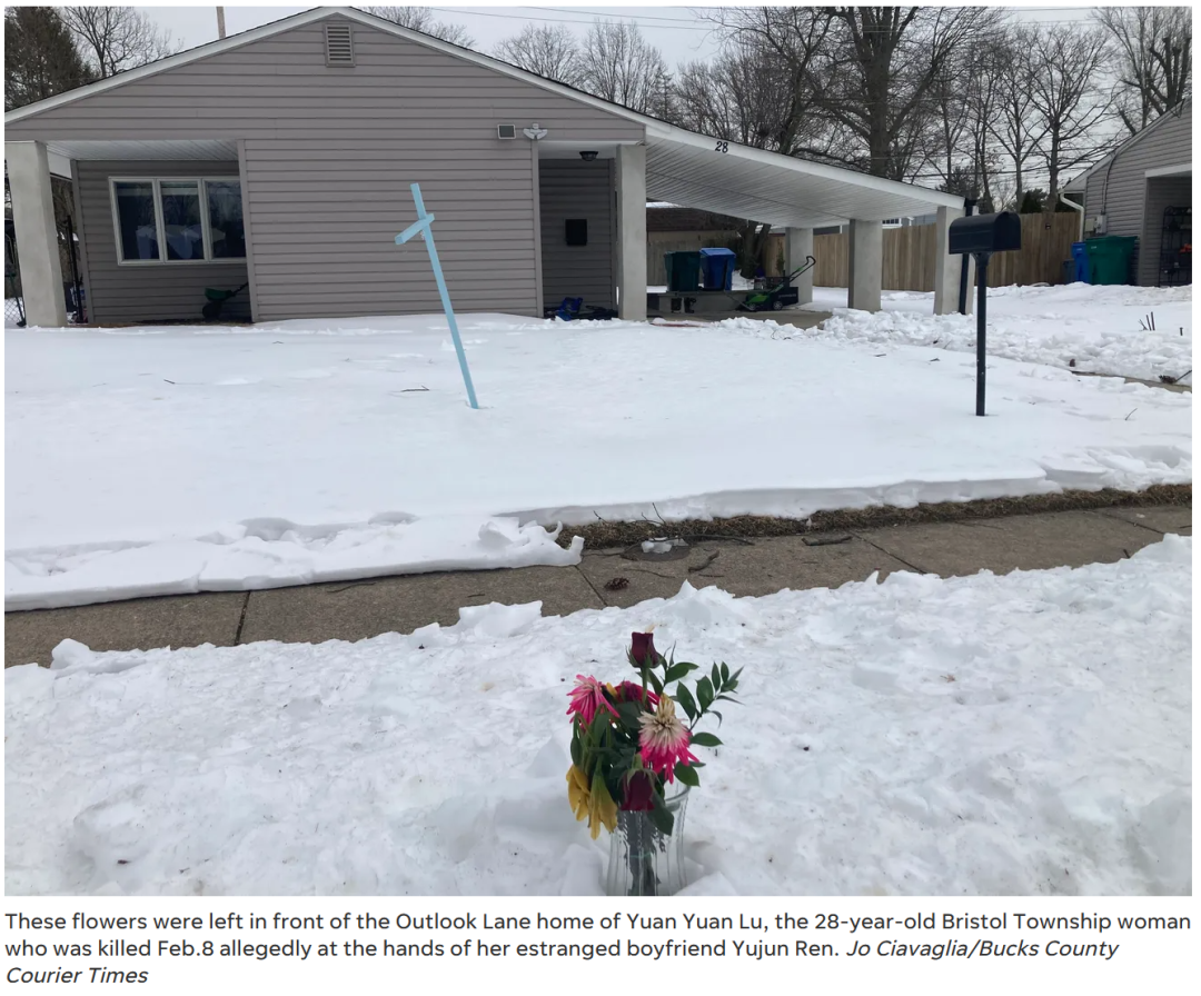 他带警察来到宾夕法尼亚州Levittown的Outlook Lane,在那里,警察发现了卢媛媛(Yuan Yuan Lu,音译)。她坐在自家门外的车里,头部中枪,已经没了呼吸。