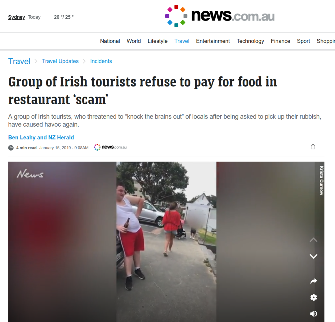 另,在疫情之前,澳洲就曾发生后一家来自爱尔兰的游客因为拒绝支付餐饮账单,而被强制要求离境了。