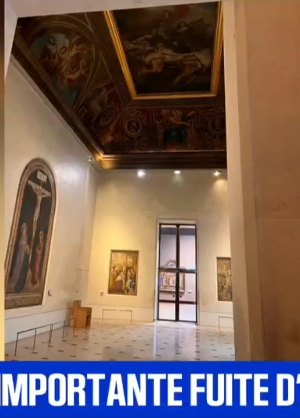 2月12日深夜,展厅上方技术间的一根加热供水管道突然破裂,水直接浇在天花板上那幅名为《法国绘画的胜利:普桑、勒苏尔和勒布伦的神化》的巨型画作上。