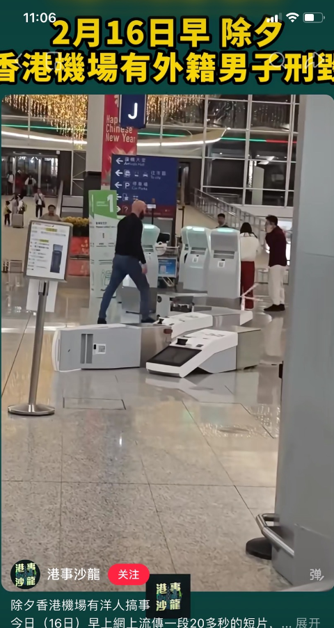 收藏除夕清晨香港机场突发混乱!外籍男子狂砸值机柜台,行李搜出伟哥再添罪