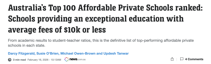 根据 MySchool和NAPLAN分析,这类学校:学费较低、学术表现稳定、在低学费私校中表现突出。