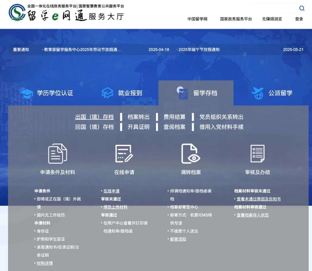 为进一步简化档案调转手续,自2024年起,在教育部留学服务中心档案管理处申请出国(境)存档的留学人员可从毕业学校转档至此。