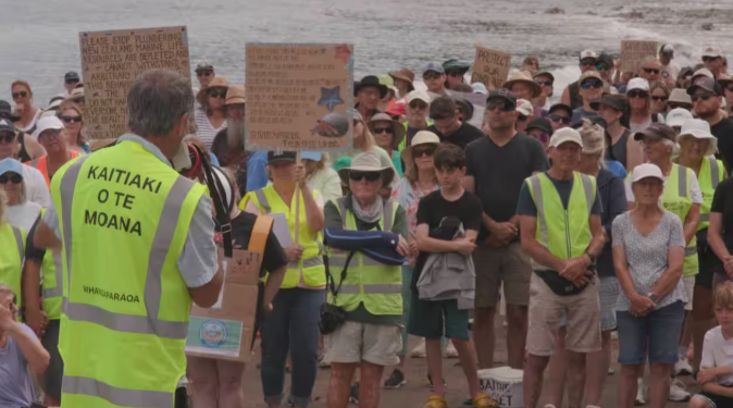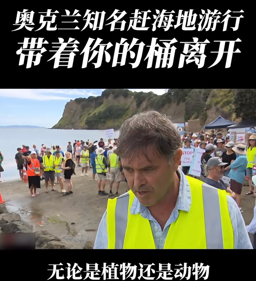 上月,新西兰Whangaparāoa半岛还举行一场大规模民众抗议,当地居民聚集在海滩,举着手写的标语。