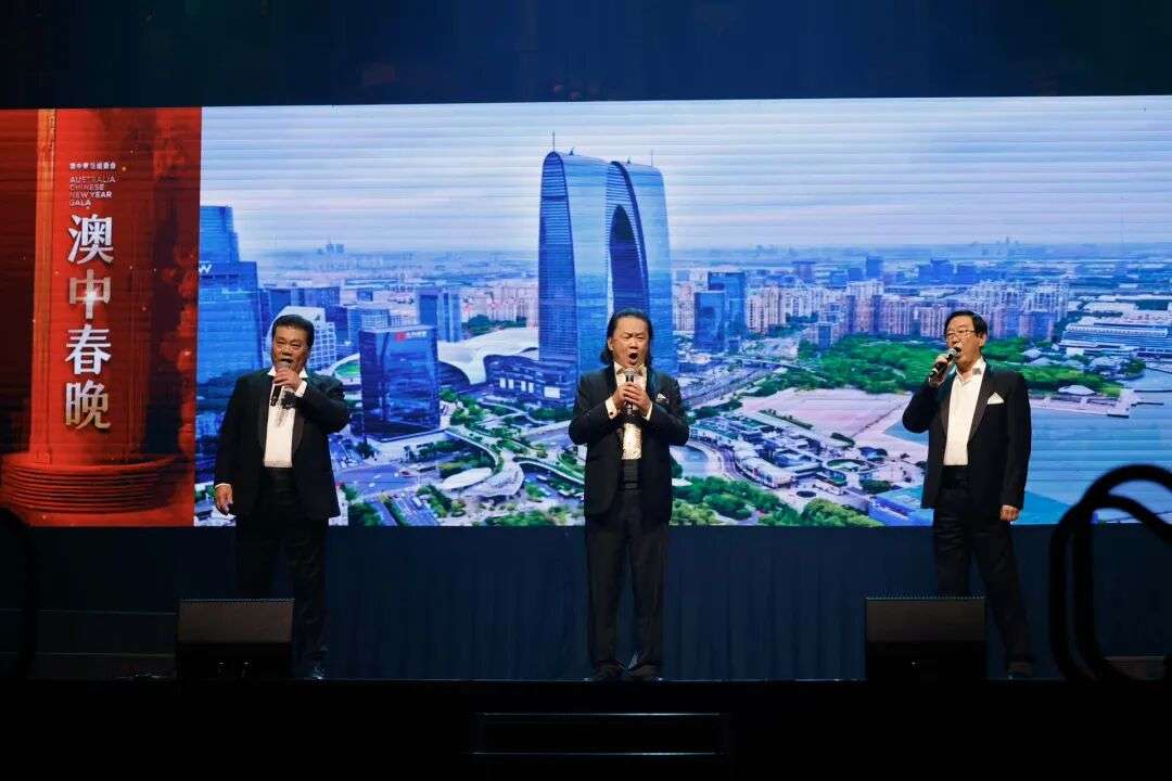 于敏、曦阳、刘铁军三位“澳中三大男高音与百人合唱团(北京之声合唱团、和谐之声合唱团)”以一曲荡气回肠的《今夜无人入睡》震撼全场,歌声穿透时空,诉说着海外侨胞的赤子之心。