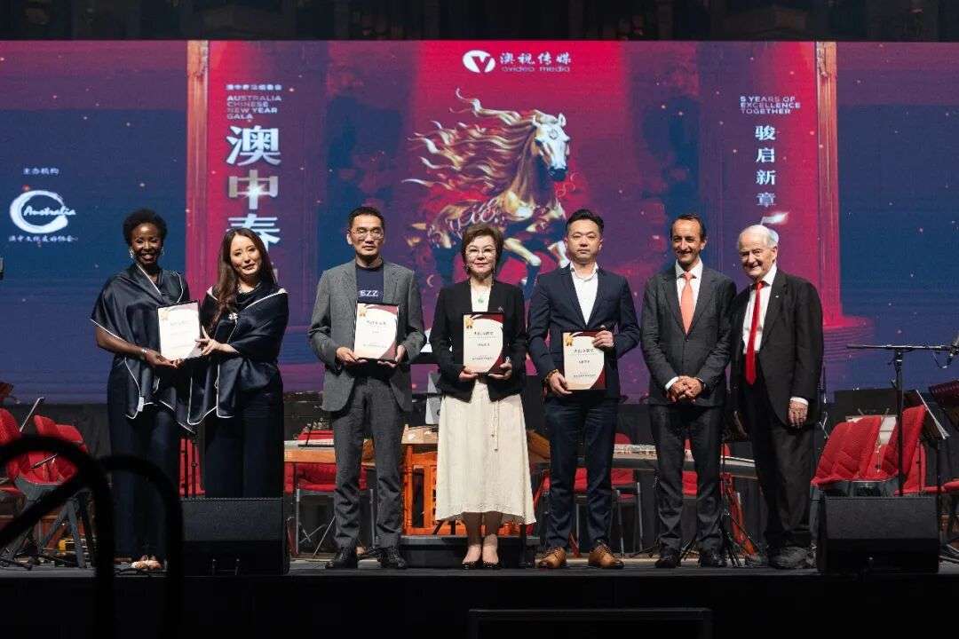 晚会特别举行了隆重的颁奖仪式,向澳药集团、EZZ、infinity zentech、无限资本颁发“杰出贡献奖”,并向汇金国际、BF、古越龙山、Penfolds、海南航空集团、Fiona Xing、Alumicorp、海格资本、中国中茶、Shelly Swimming School、澳大利亚川渝总商会等多家机构及个人颁发“荣誉贡献奖”,感谢他们以实际行动诠释责任,以合作书写共赢。