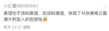 甚至还有网友类比说:“英语也不该叫英语,应该叫澳语,体现了对非英格兰裔澳大利亚人的包容性。”这种说法明显是在反讽所谓的“改名逻辑”!