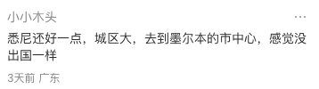 “悉尼还好一点,城区大,去到墨尔本的市中心,感觉没出国一样”!