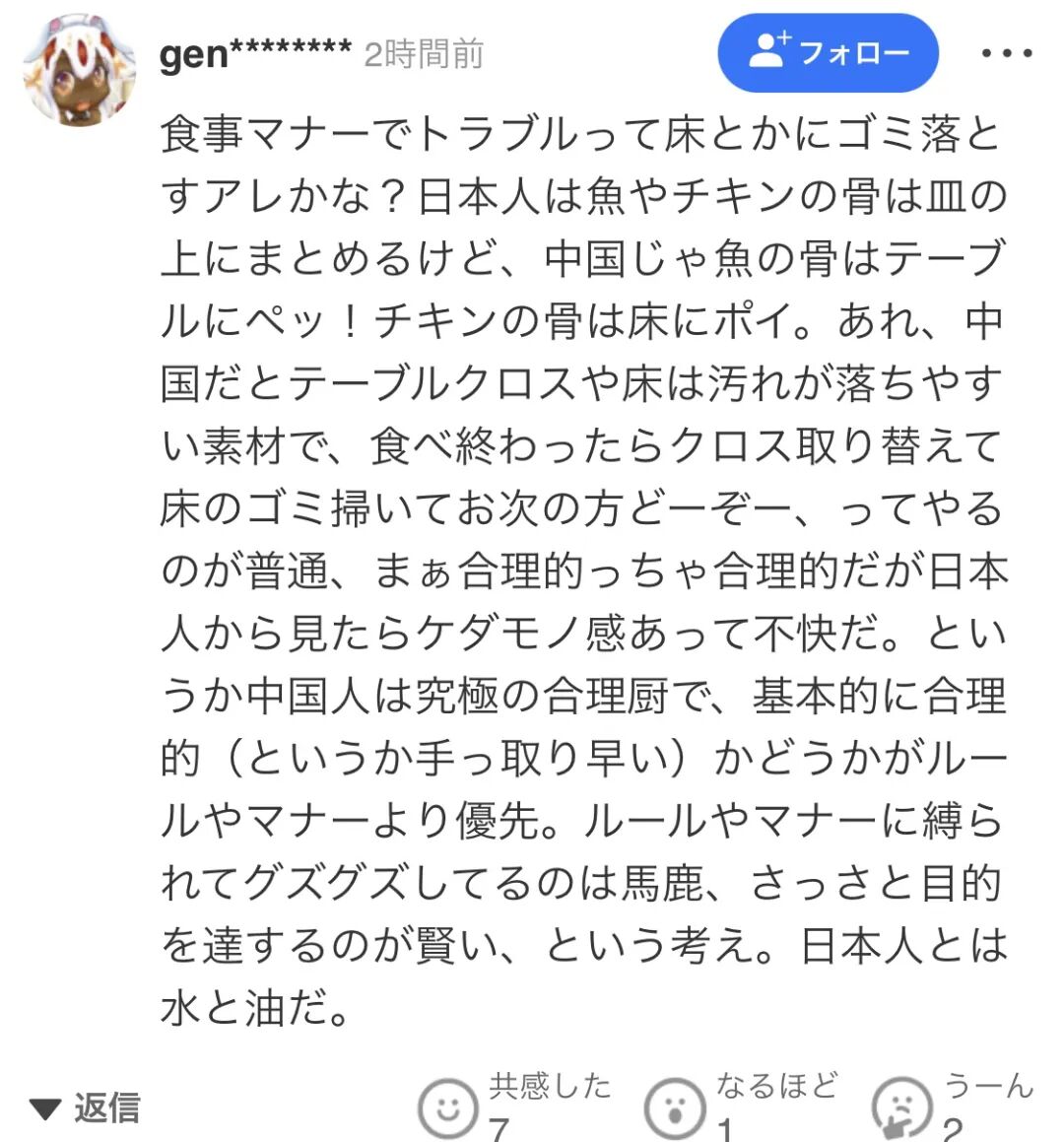 评论区还有不少日本网友细数中国人的各种“餐桌不良礼仪”。