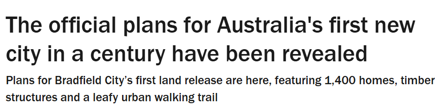 这次规划由Bradfield Development Authority 发布,可以说是整个新城建设的重要里程碑。