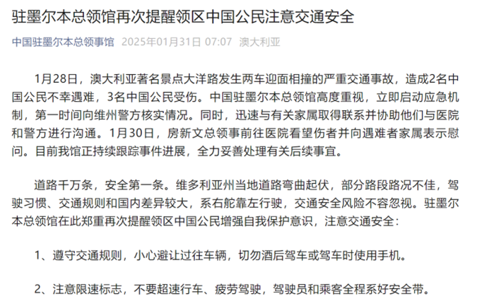 类似的事件频频发生,中国驻墨尔本总领馆也是反复提醒领区中国公民注意交通安全。