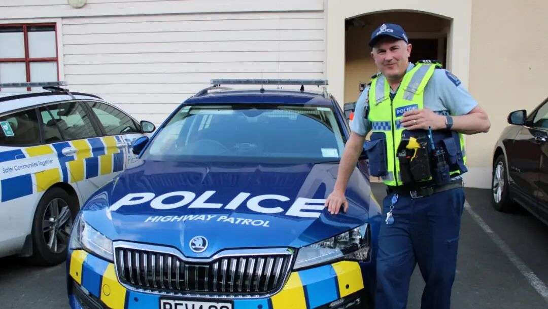 他是驻扎在南岛8号国道(SH8)的奥马鲁警察之一,在雪景公路上巡逻是他每天的工作。