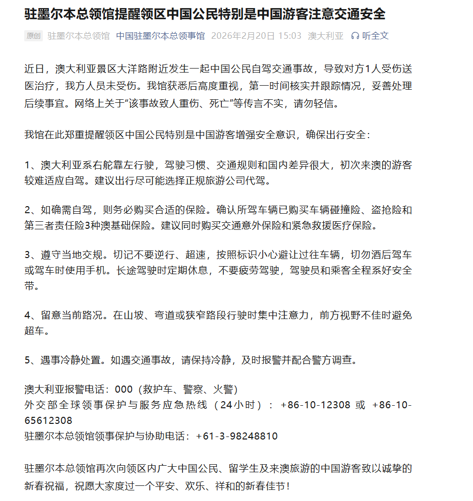 随后,中国驻墨尔本总领事馆也发布公告,提醒中国公民特别是中国游客注意安全!