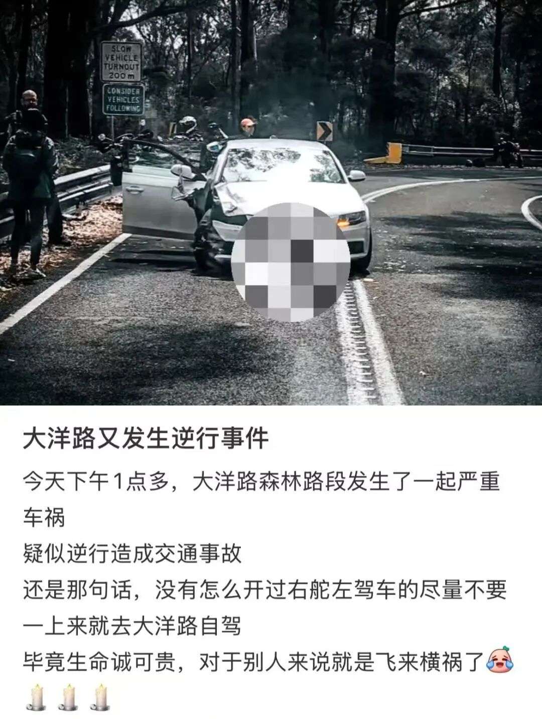 收藏澳洲大洋路中国游客逆行!酿重大车祸!