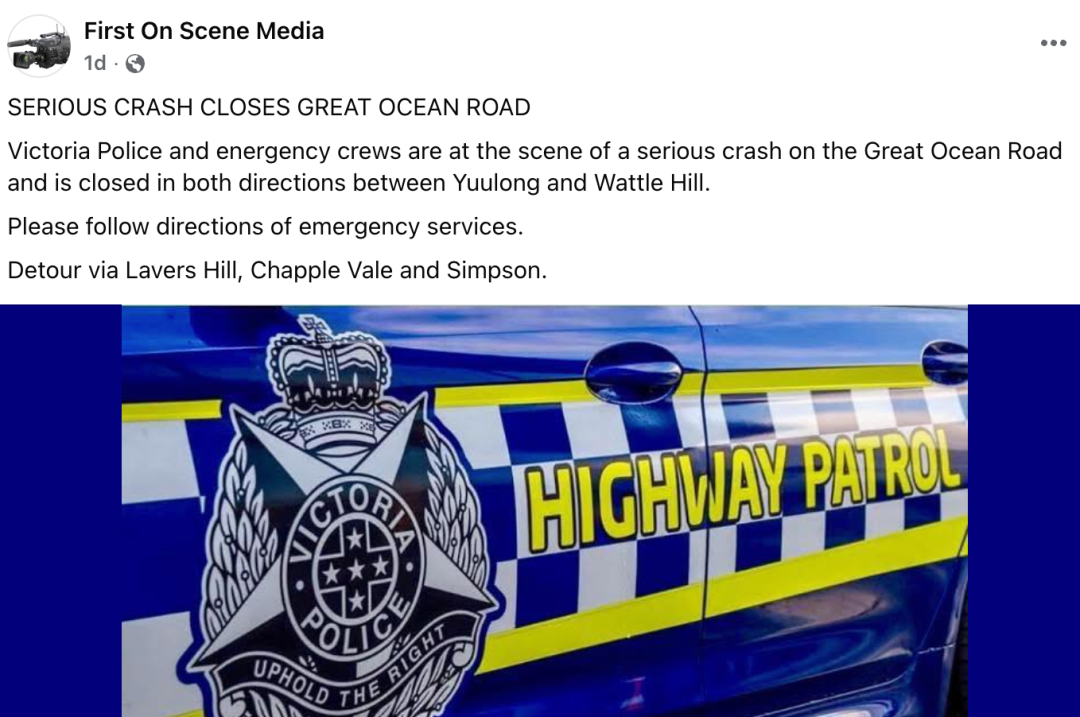 维州警方和救援部门提醒驾驶者在行经大洋路等山区或沿海弯道多、视野变化大的路段时,务必注意行车安全,遵守限速标志,保持警觉,避免危险驾驶!