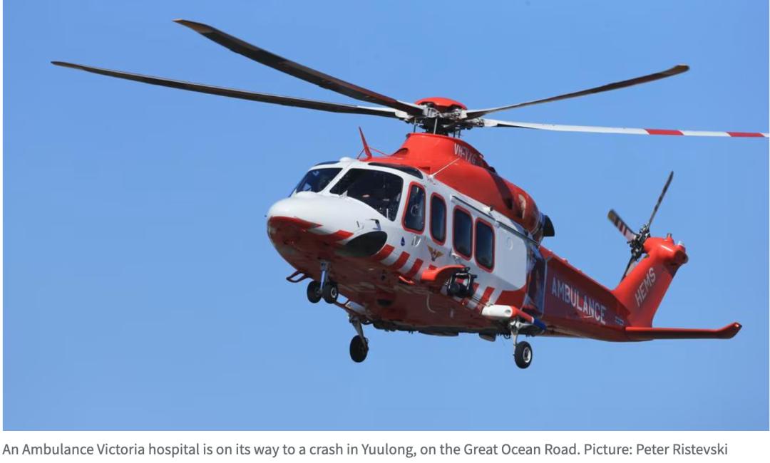 维州大洋路于2月19日(周四)中午发生一起迎面相撞事故,当地紧急服务部门调派救援直升机赶赴现场展开救援!