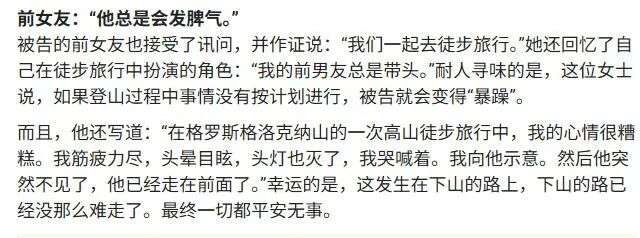 对检察官而言,Andrea的证词让整个案子的性质一下变了,从“意外”,变成了一种“可复制的作业”——谁知道他是不是从这次登山得到了杀人的灵感?