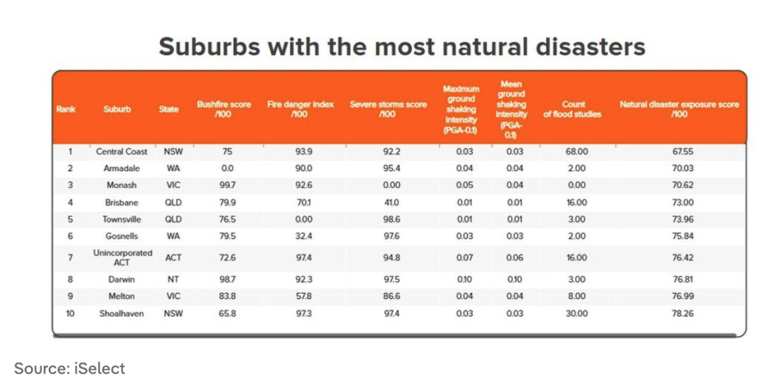 而维洲的Melbourne, Yarra, Monash, Darebin and Yarra Ranges,这些地区房屋老旧、易受风暴侵袭或应急准备不足,导致得分较低。