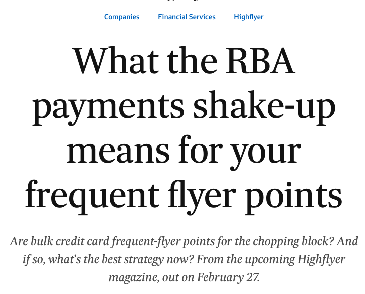 如果澳洲央行推进最新一轮针对刷卡附加费的改革,全面禁止商家向消费者额外收取刷卡手续费,那么通过信用卡大规模积攒积分的时代,可能会发生根本变化!
