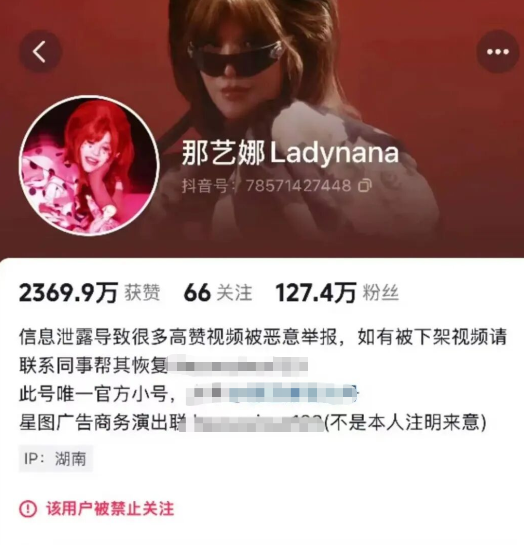 另据北京日报,在部分平台上,那艺娜的多个账号被禁止关注,视频已被清空,在搜索栏也已无法找到其账号。