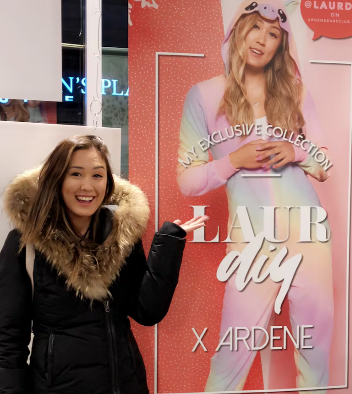 现居Los Angeles的LaurDIY,在YouTube各频道拥有超过880万粉丝。她曾与Disney、Starbucks、PopSockets及服装品牌Ardene合作,甚至为Ardene设计了自己的连体衣和睡衣系列。